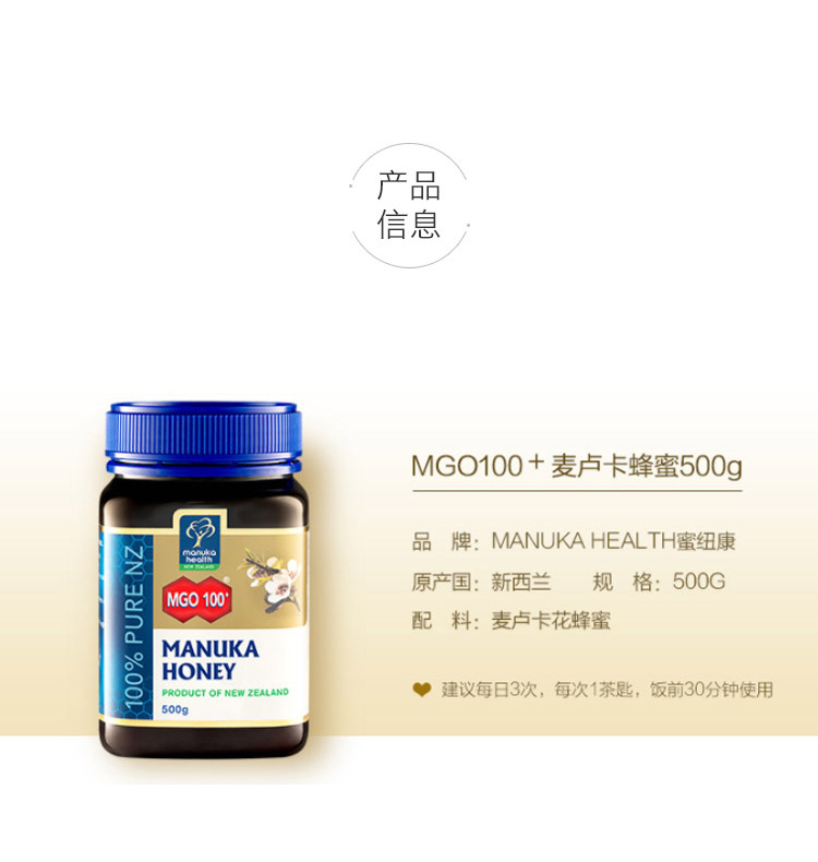 Manuka Health 蜜纽康 麦卢卡蜂蜜 MGO 100+ 500g