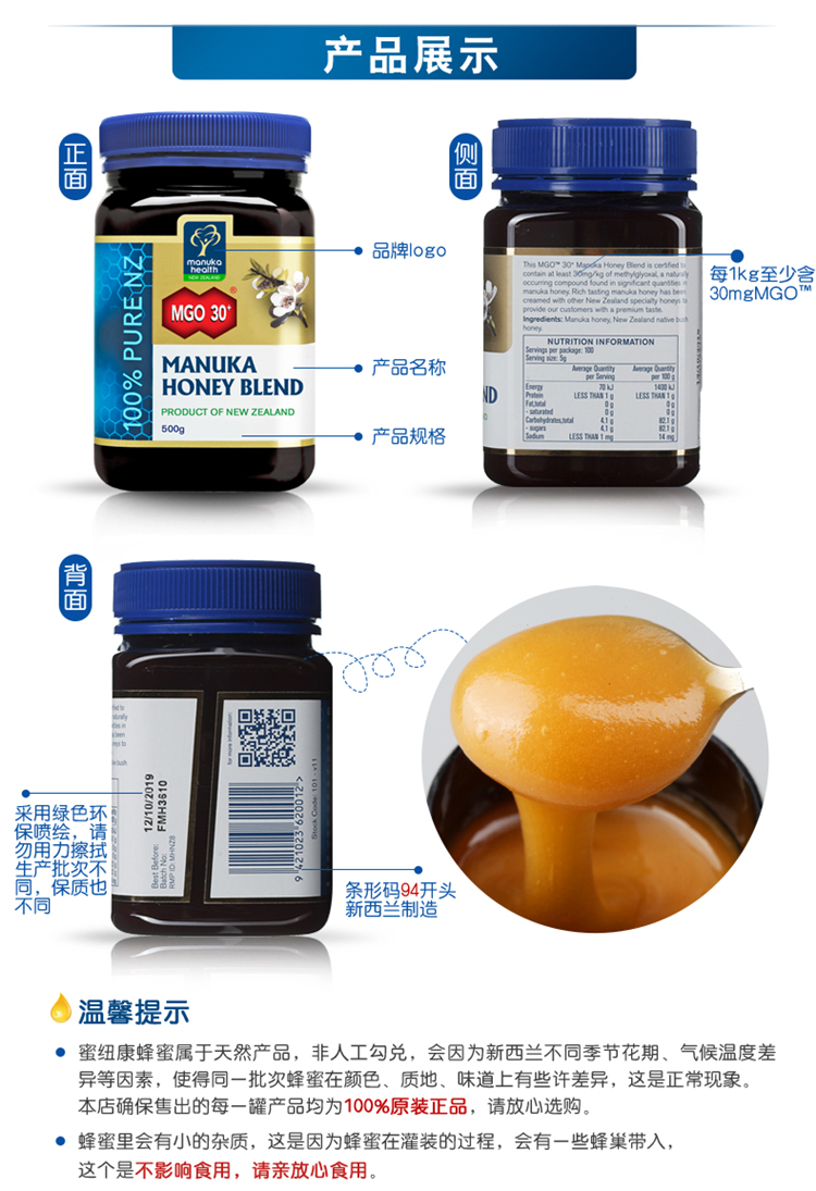 Manuka Health 蜜纽康 麦卢卡蜂蜜 MGO 30+ 500g