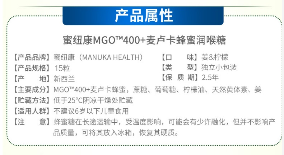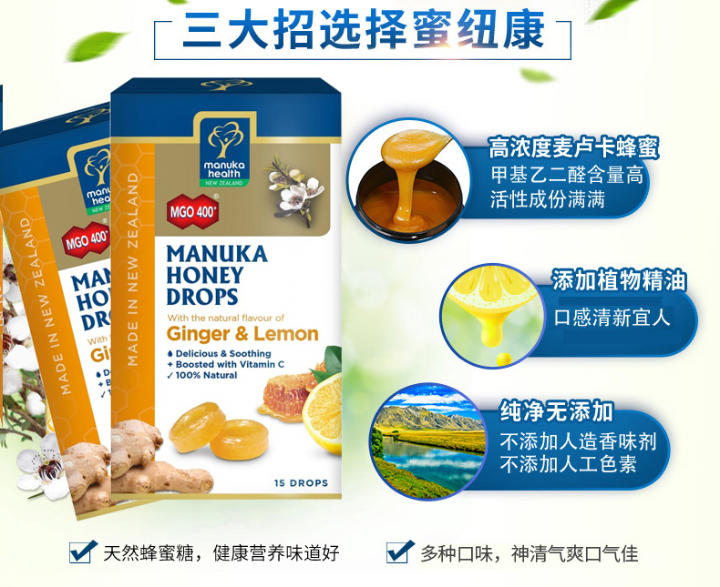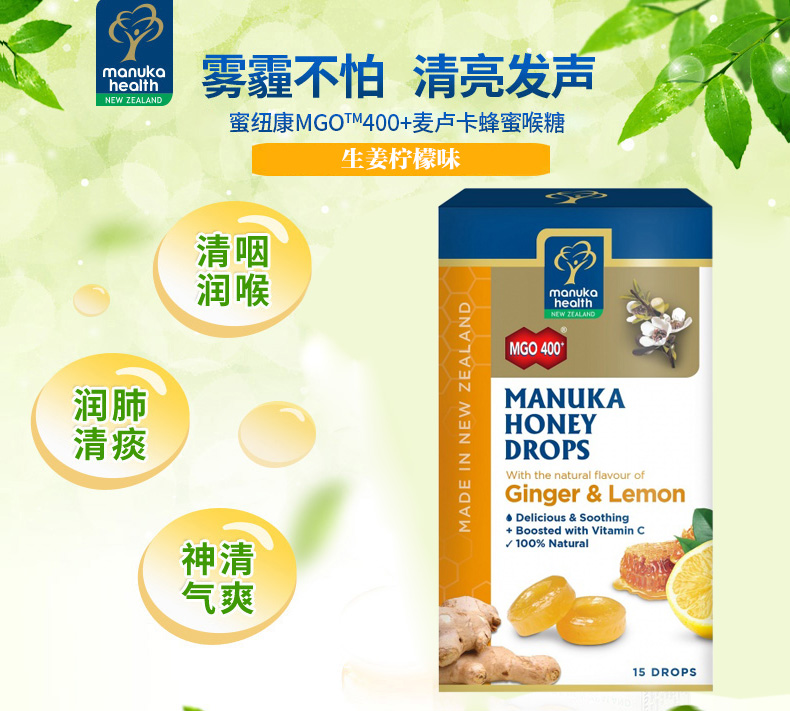 Manuka Health 蜜纽康 麦卢卡400+柠檬+姜糖 15粒