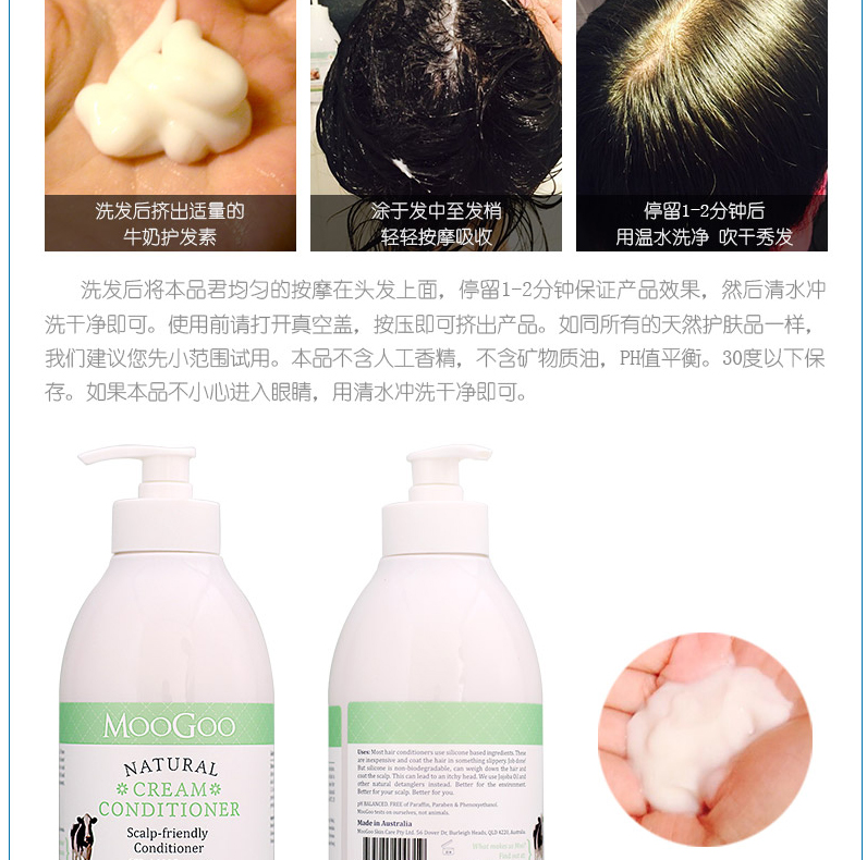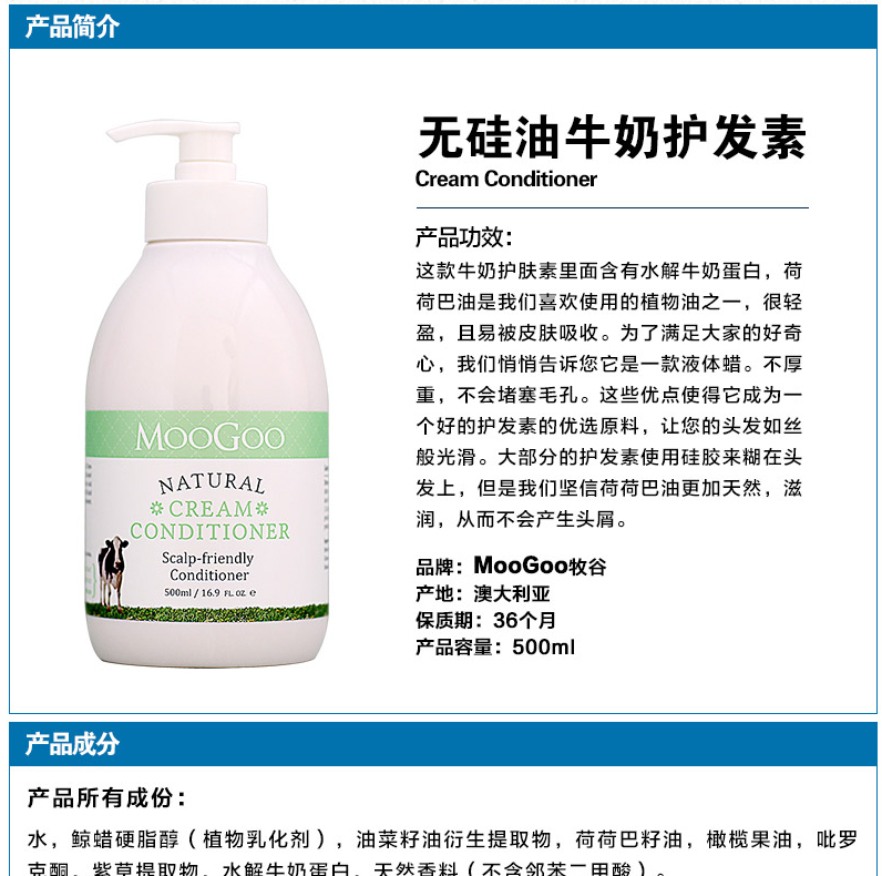 Moogoo澳洲无硅油牛奶莹润护发素500ml 滋润修护止痒不堵塞毛孔