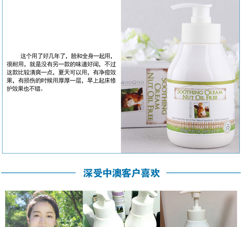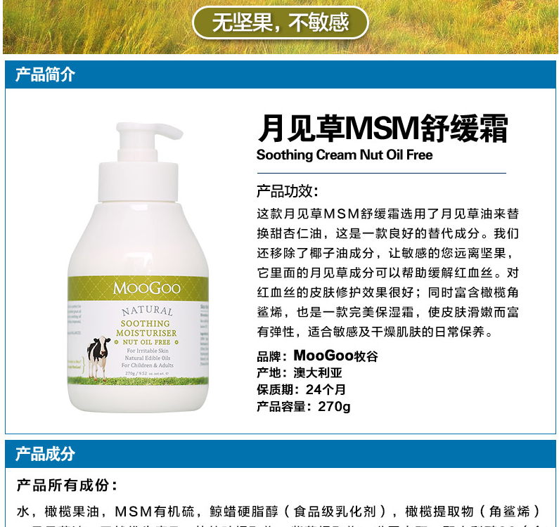 Moogoo澳洲月见草MSM舒缓霜270g缓解红血丝修护缓解痘印舒缓保湿
