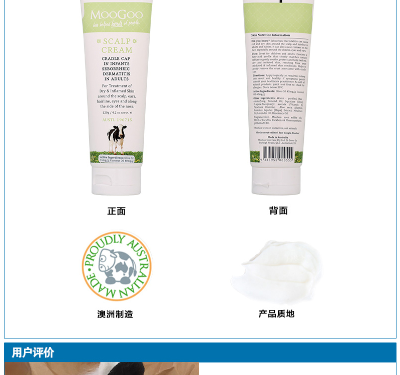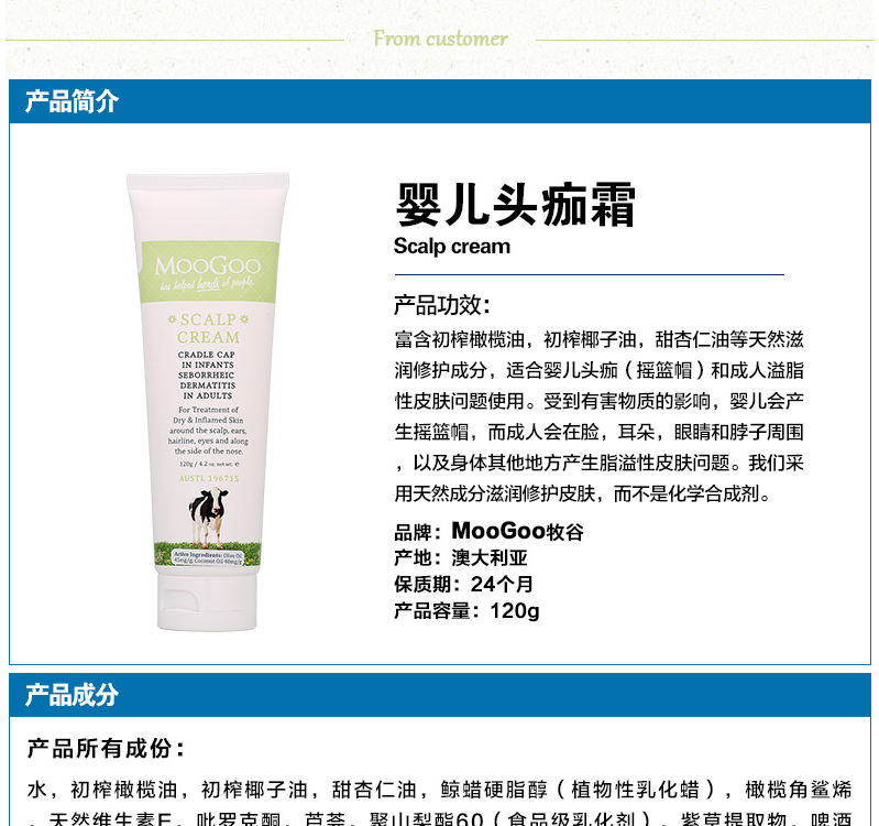 Moogoo澳洲橄榄油婴儿头痂霜120g舒缓修护头皮头痂鸡皮身体乳