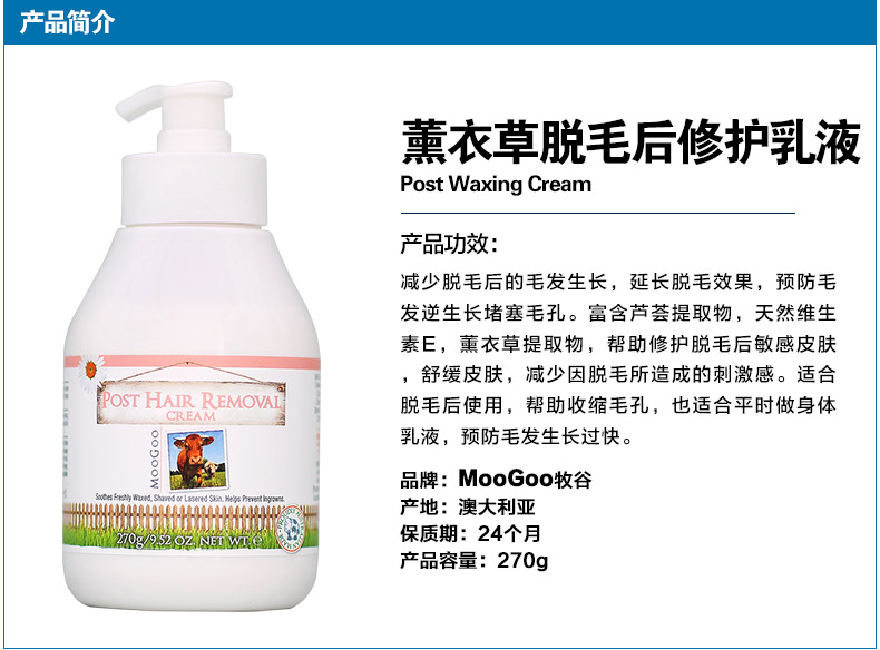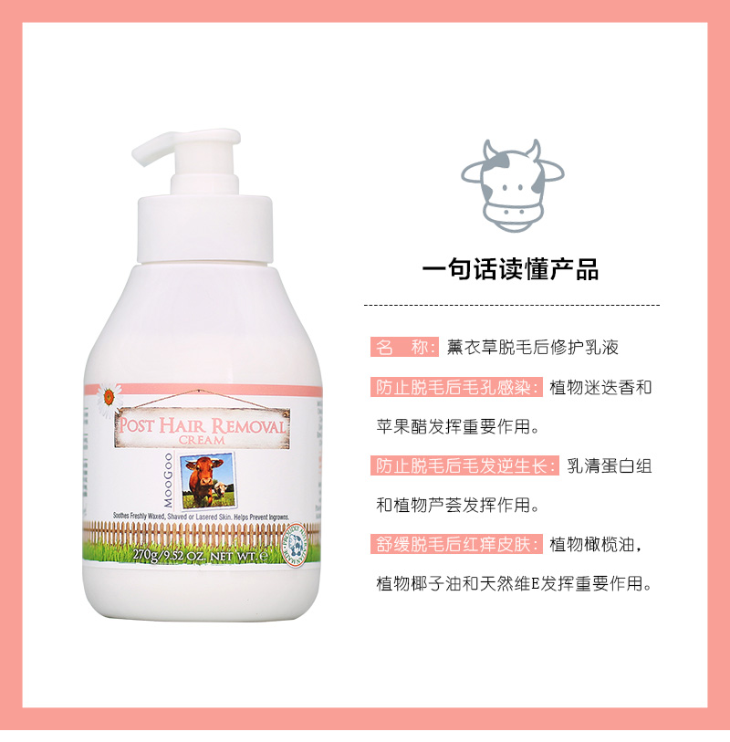 Moogoo澳洲薰衣草脱毛修复乳液270g舒缓须后乳预防毛发逆生长