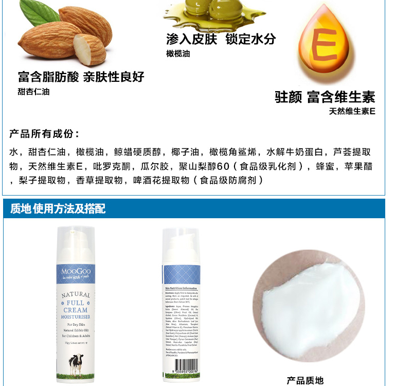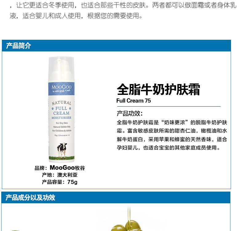 Moogoo 全脂牛奶霜75g补水保湿平滑莹润温和滋养弹润紧致