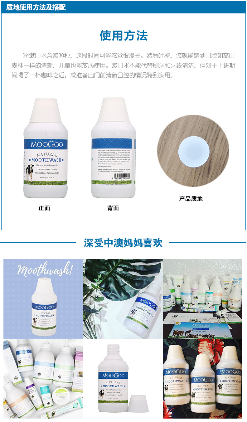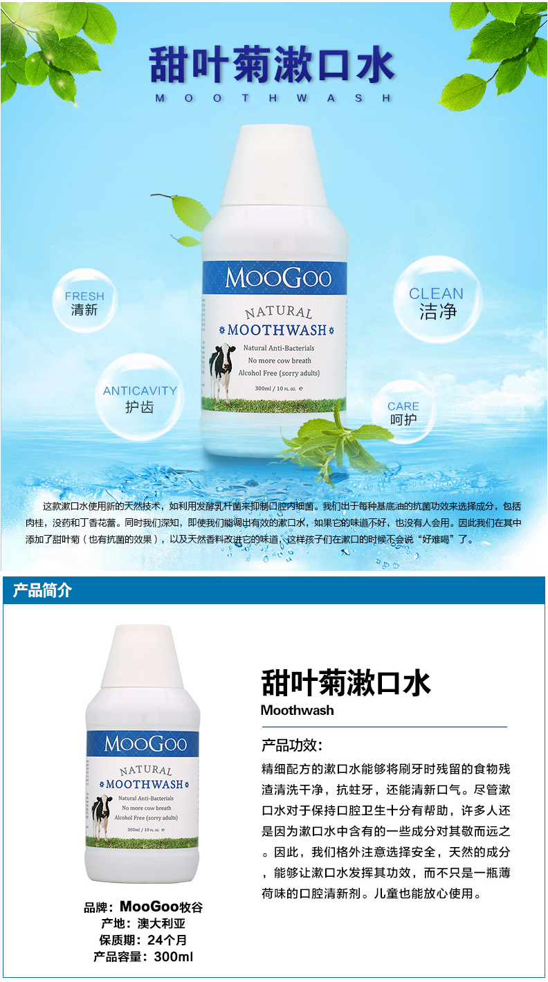 Moogoo 甜叶菊漱口水300毫升 抗蛀牙清新口气清洁力度好