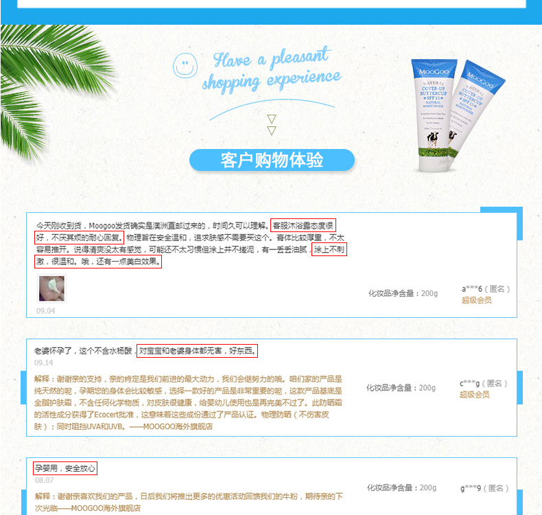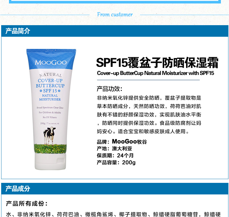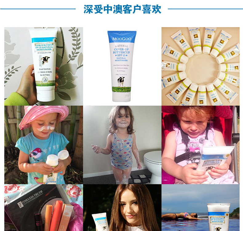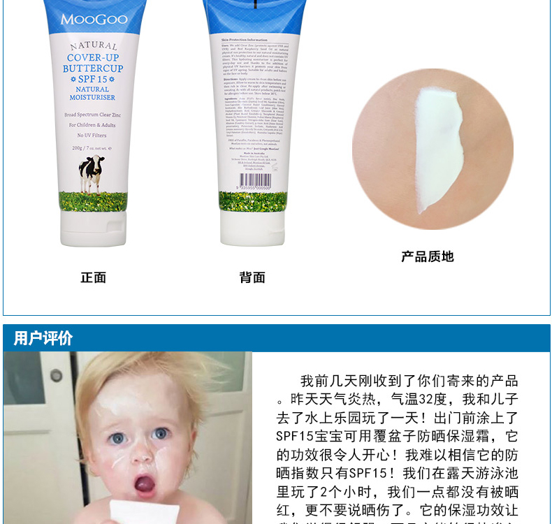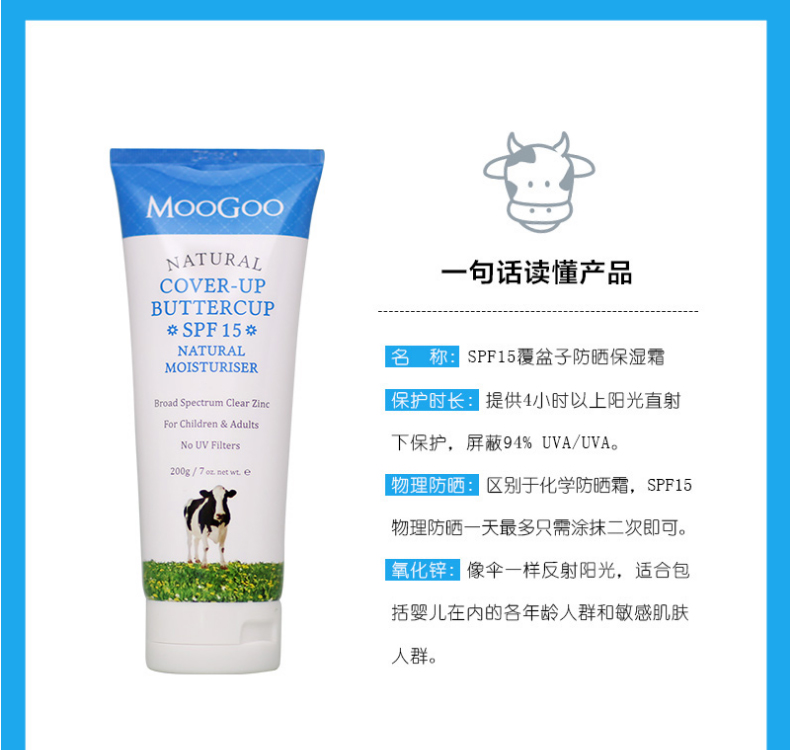 MoogooSPF15覆盆子防晒保湿霜200ml物理防晒不刺激