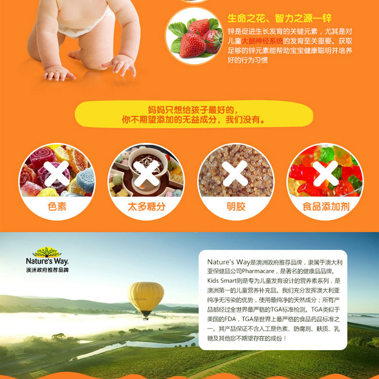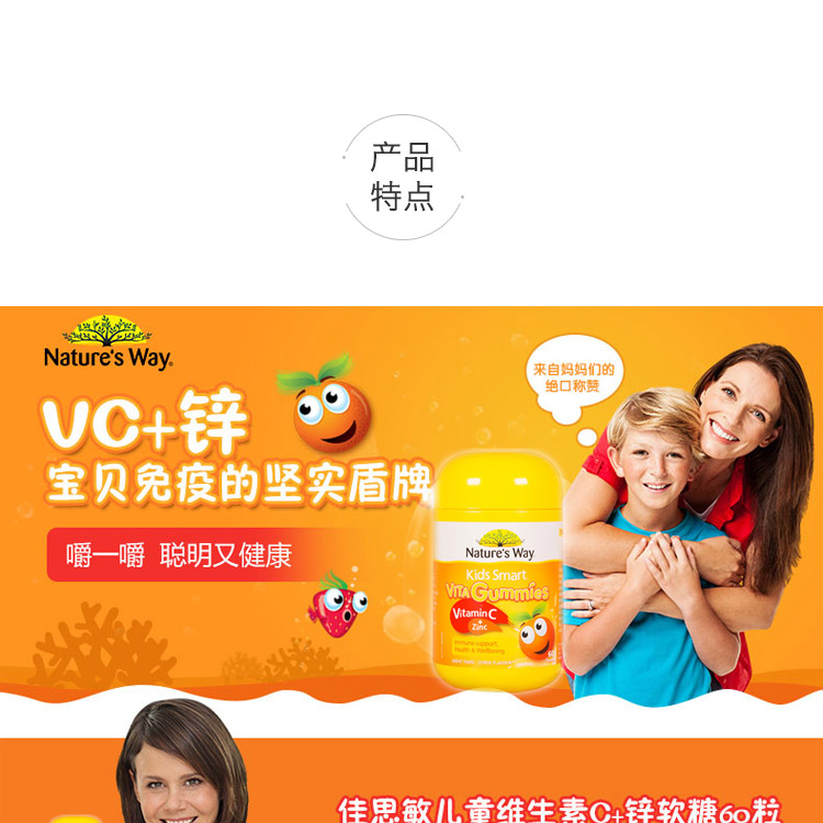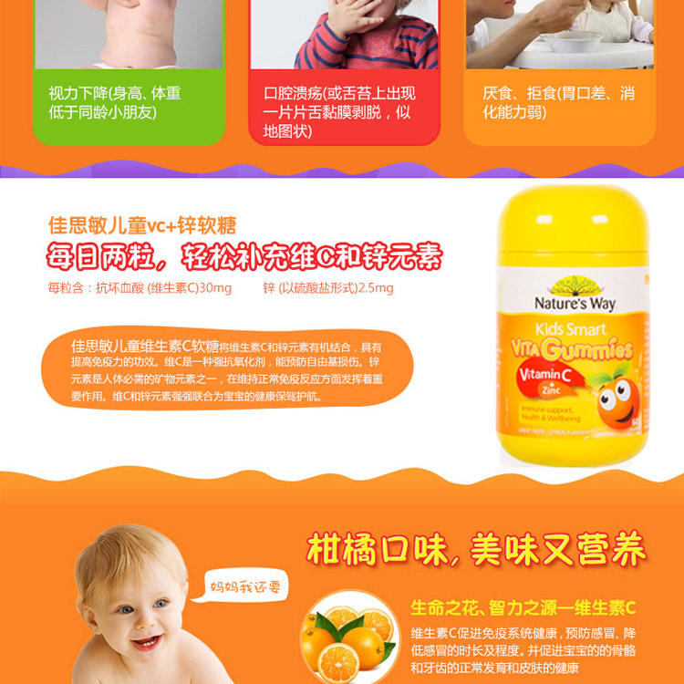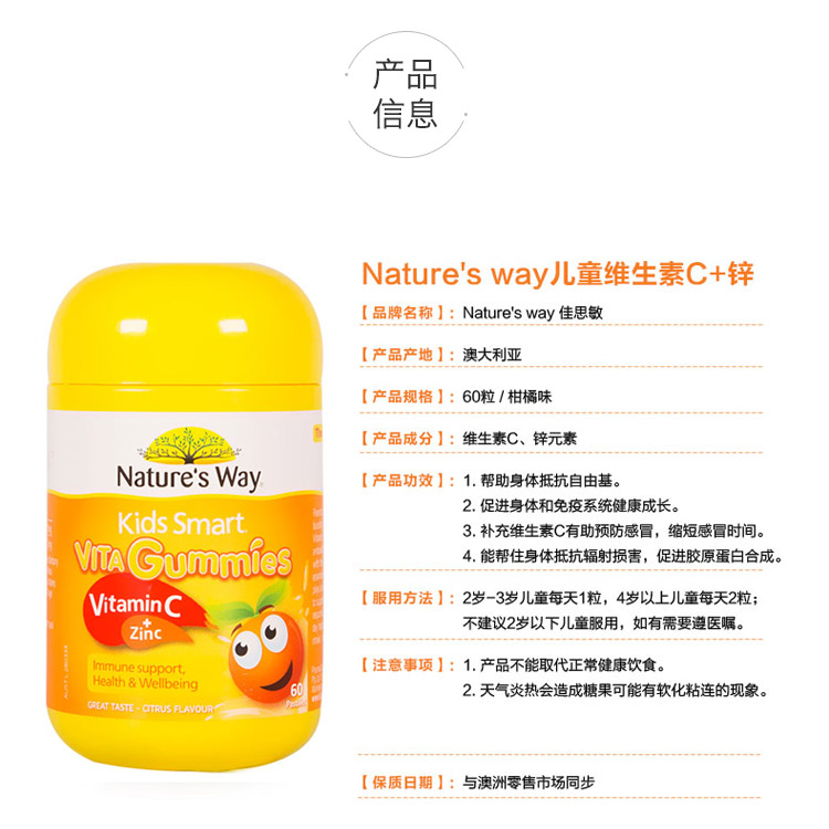 Nature‘s Way佳思敏儿童软糖维生素c+锌 宝宝补锌 VC60粒