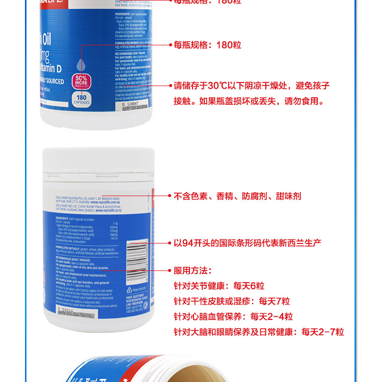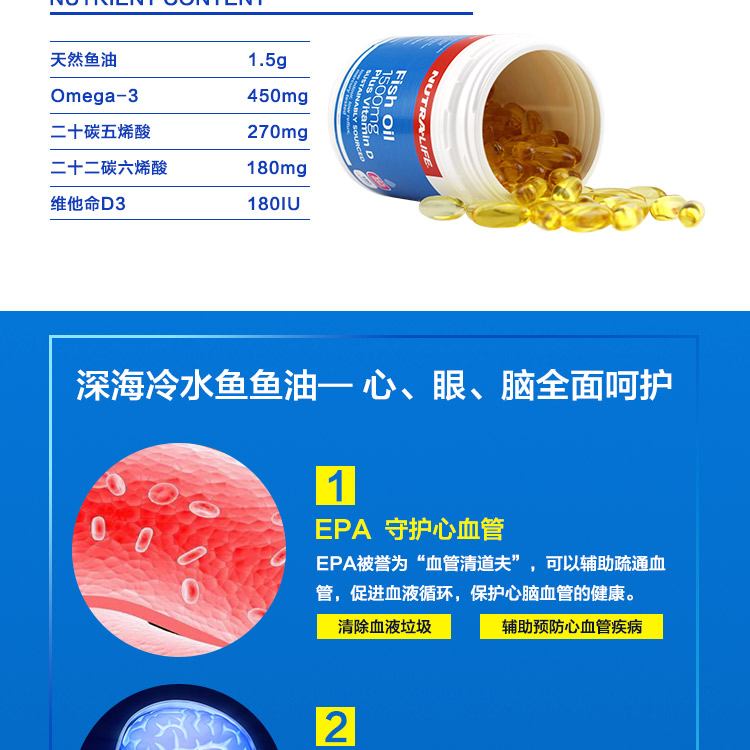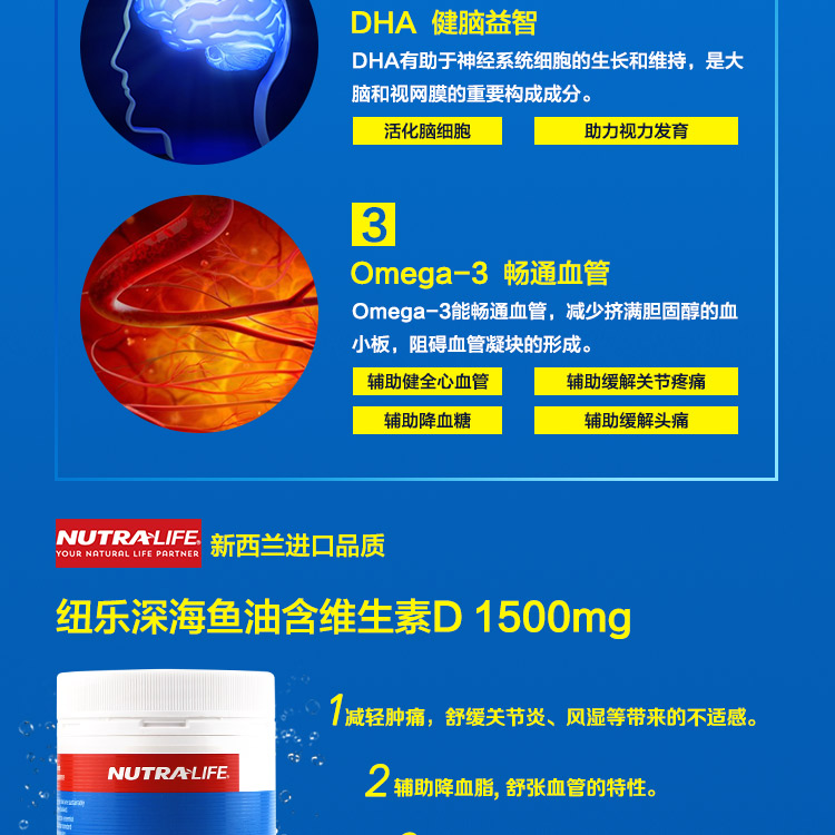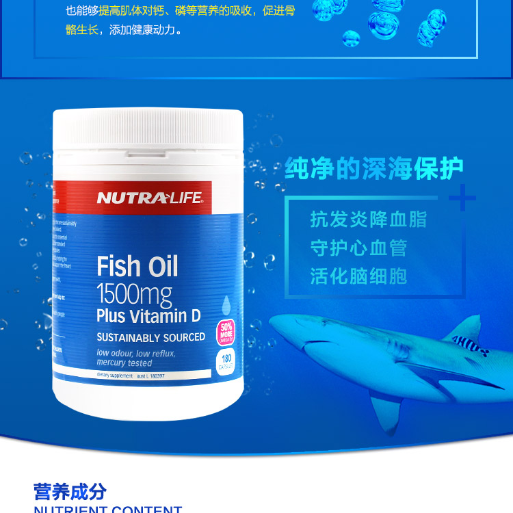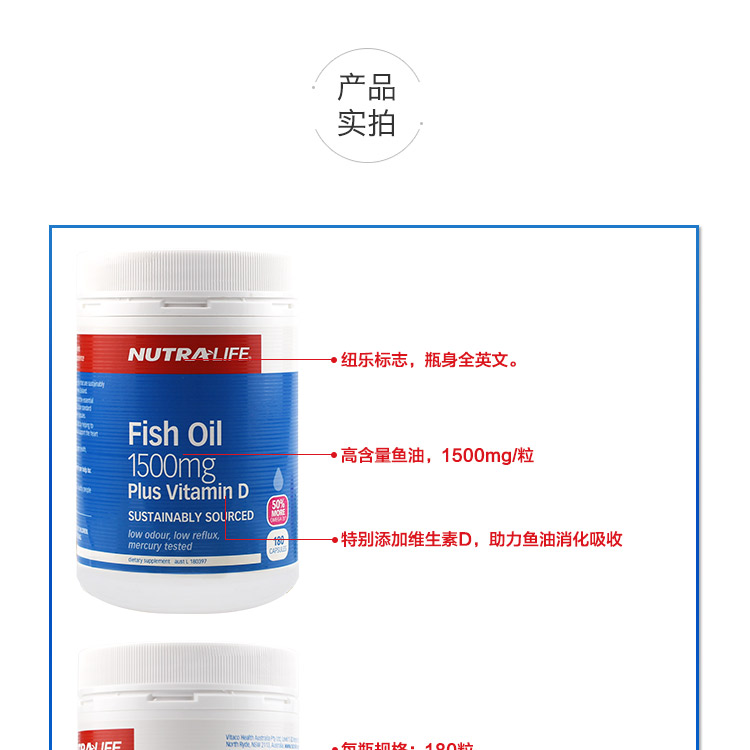 Nutra-life 纽乐 鱼油1500毫克加维生素D 180粒