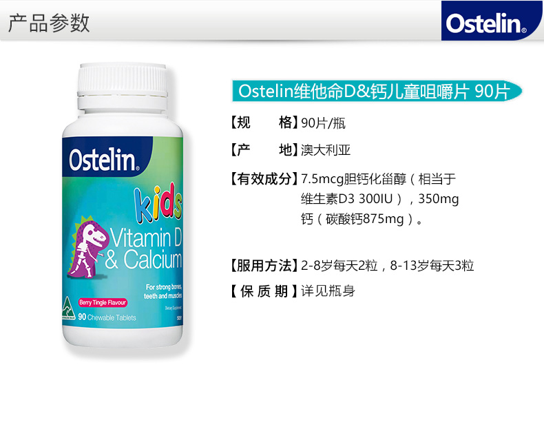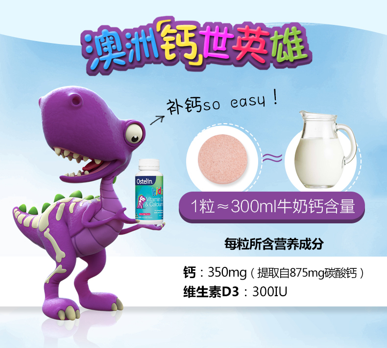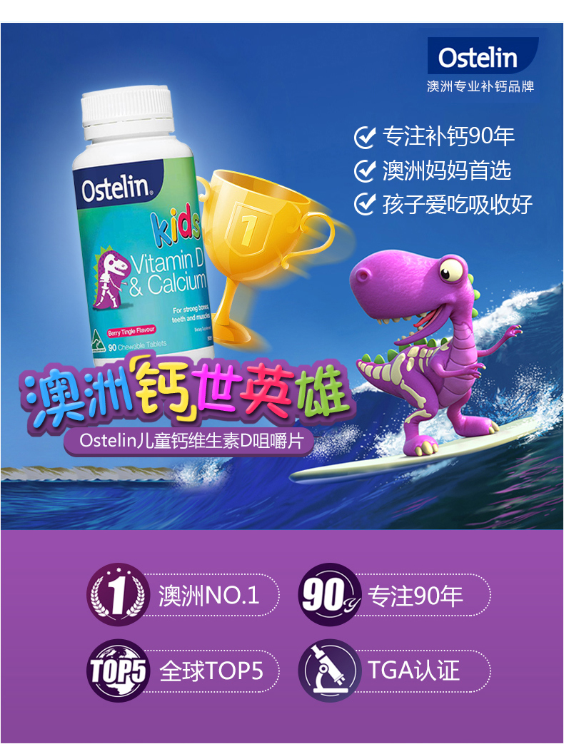 Ostelin 大恐龙 钙+VD 儿童 90粒