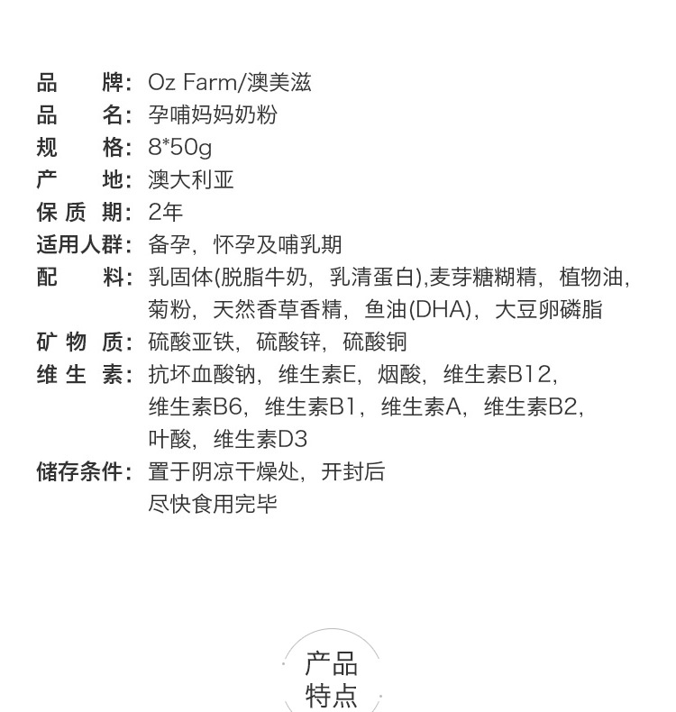 OZFarm 孕妇奶粉 8*50g 小包装