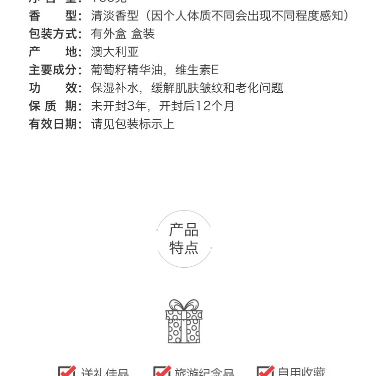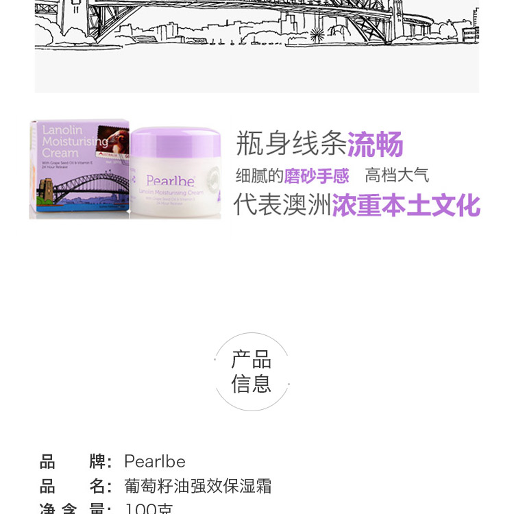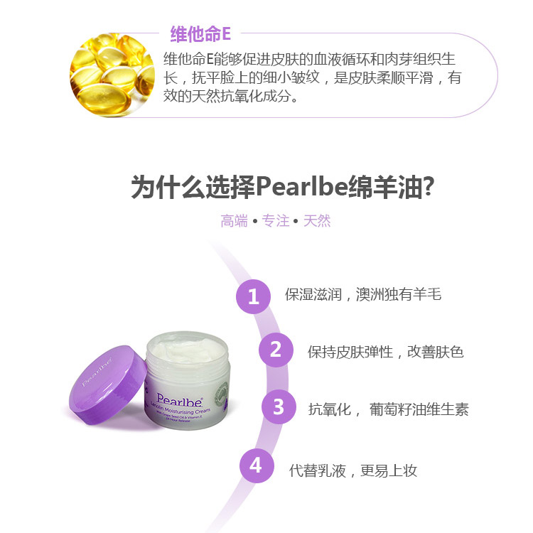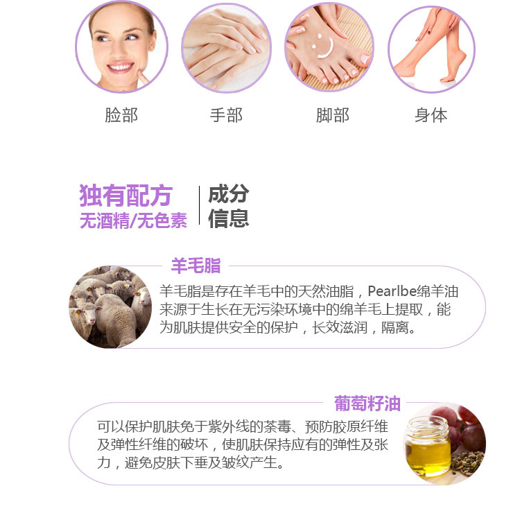 Pearlbe手绘葡萄籽油VE绵羊油24小时保湿