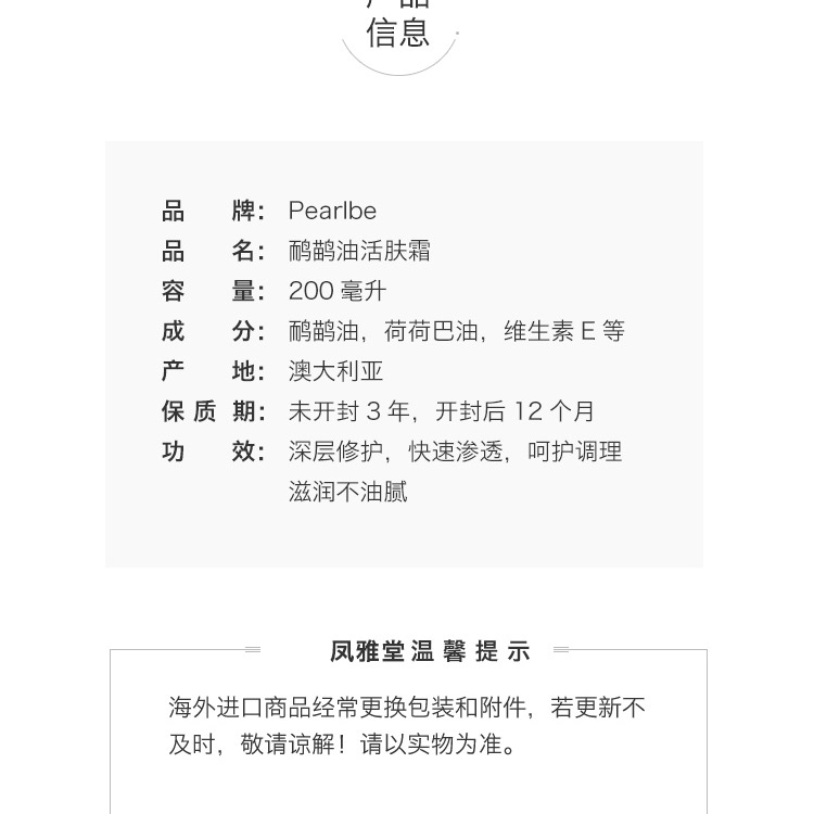 Pearlbe 荷荷巴油VE鸸鹋油 200ml