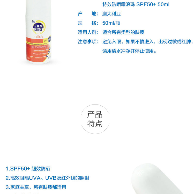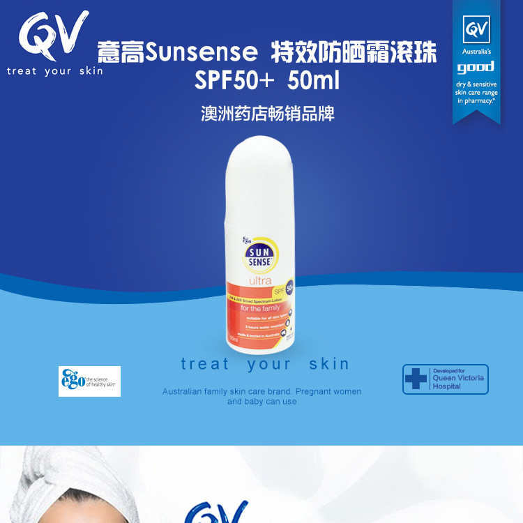 QV Ego(意高) Sunsense 防晒霜滚珠 SPF50+ 50ml
