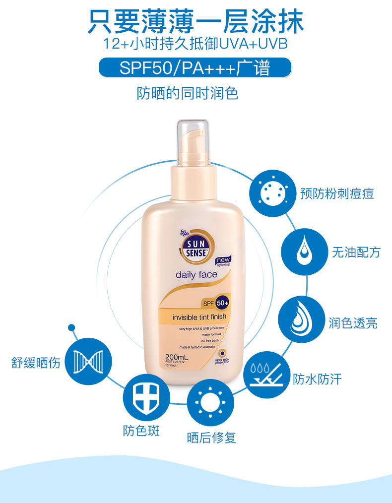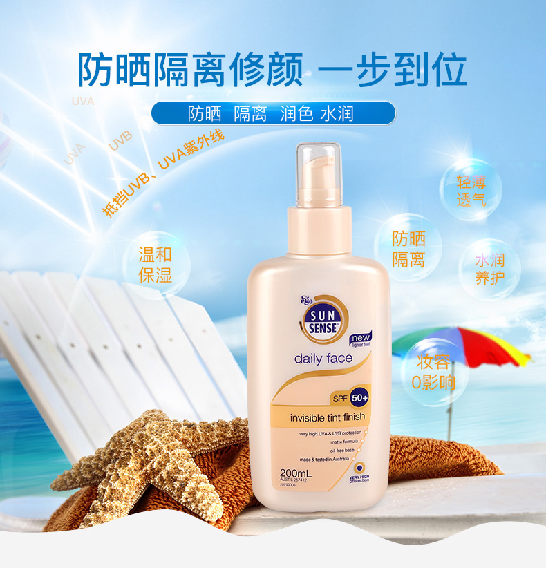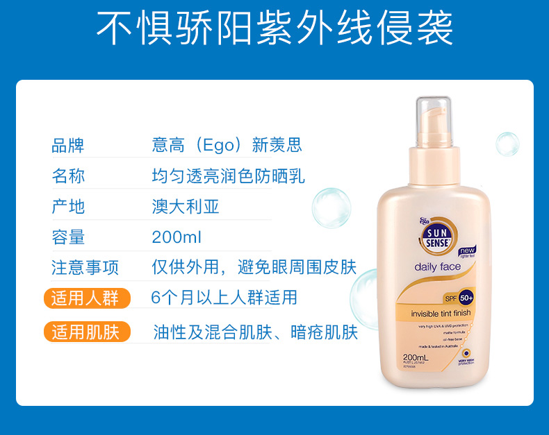 QV Ego Sunsense均匀透亮润色隔离防晒乳SPF50 200ml 亮肤防紫外线不油腻