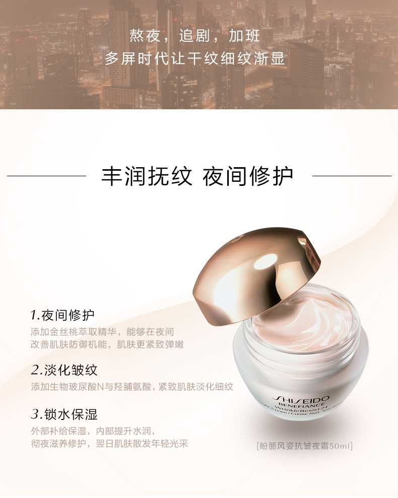 Shiseido 资生堂 盼丽风姿抗皱夜霜50ml 淡化皱纹 滋润保湿
