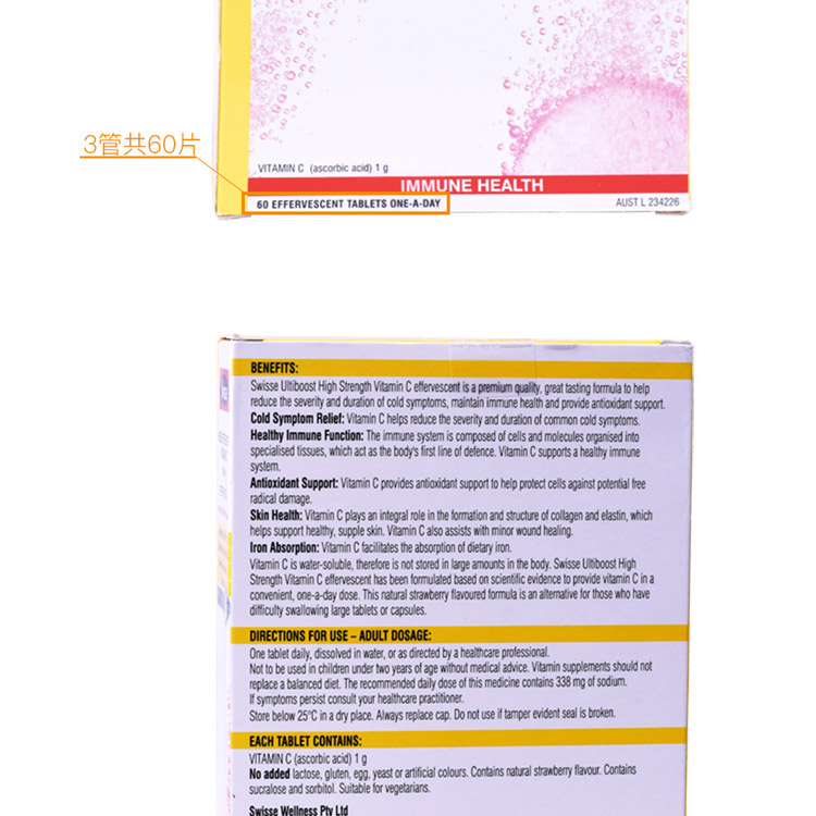 Swisse 高浓缩维C泡腾片 60粒装