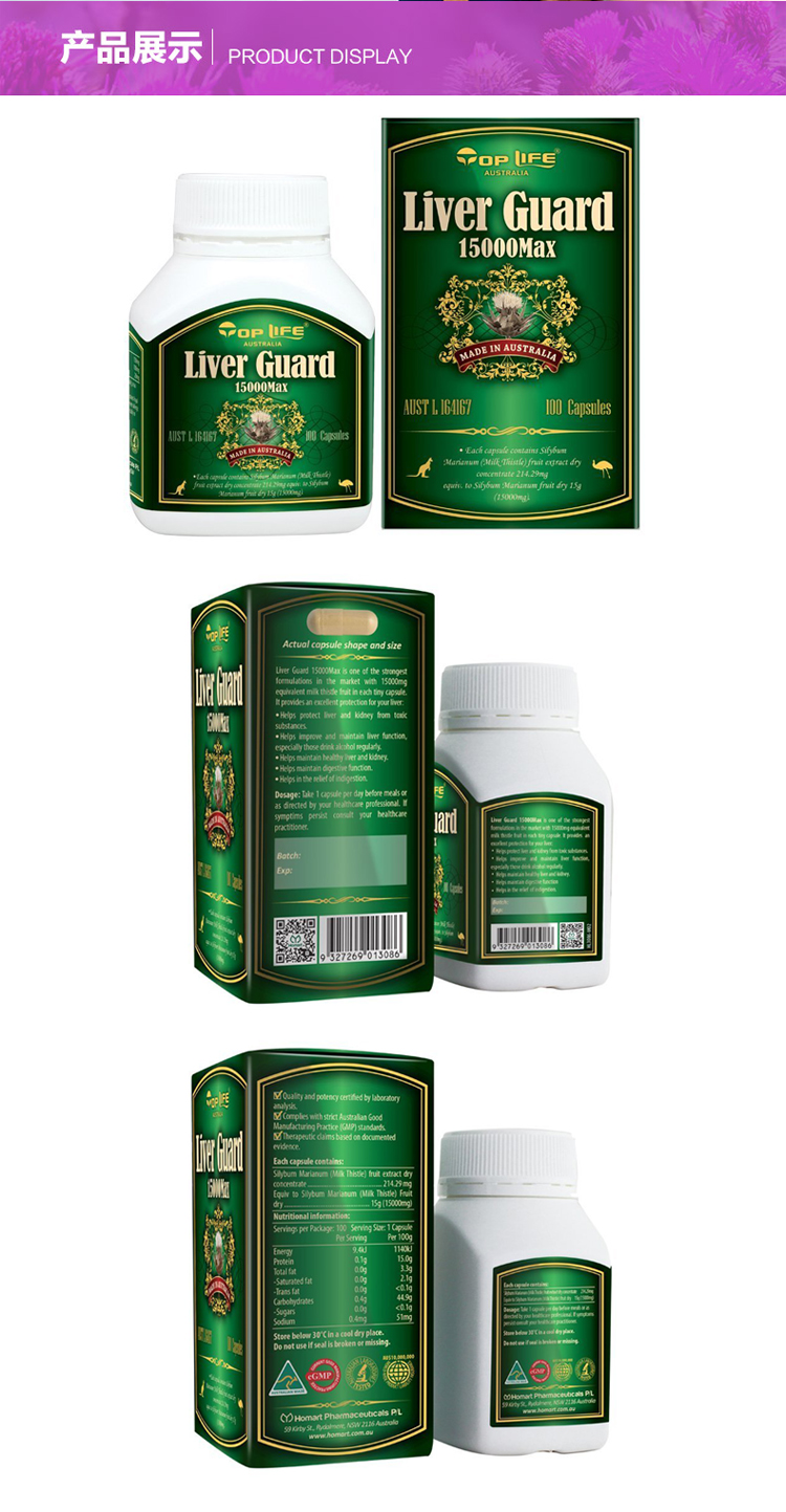 Top Life 特维康奶蓟护肝胶囊15000mg 100粒
