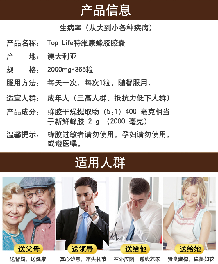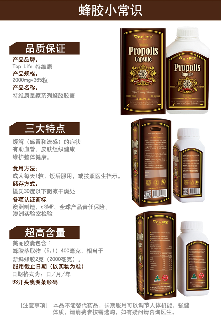 Top life 特维康无铅黑蜂胶2000mg 365粒