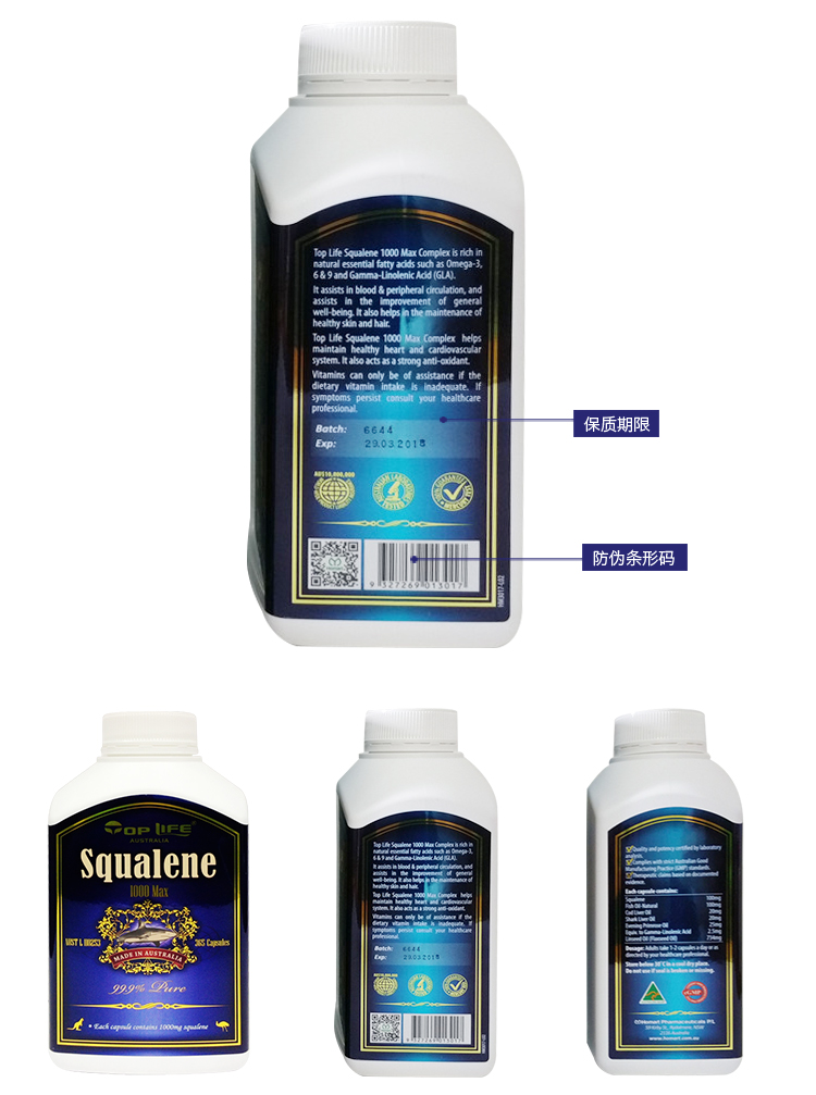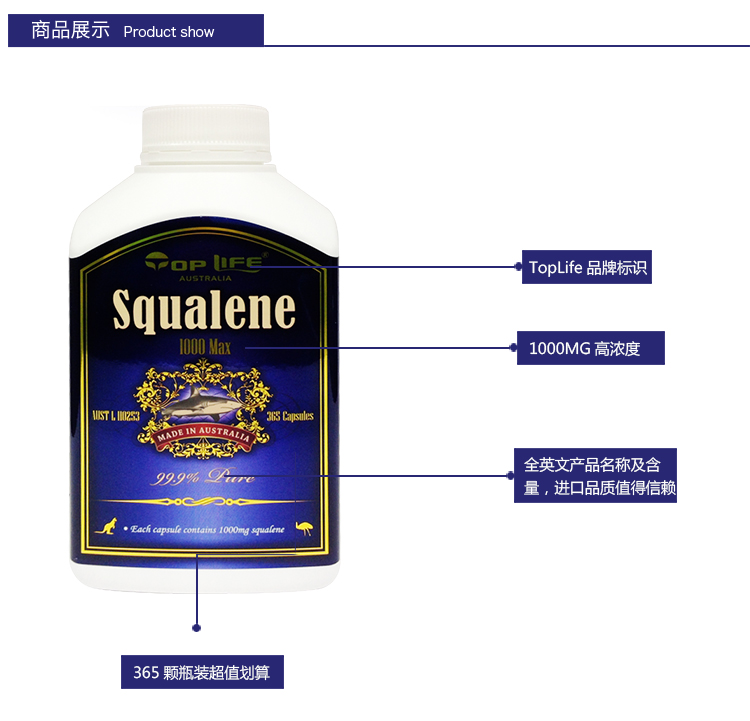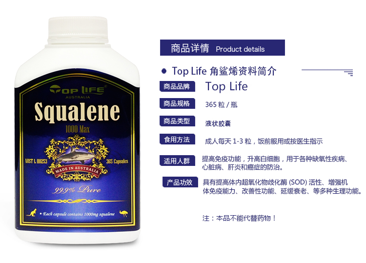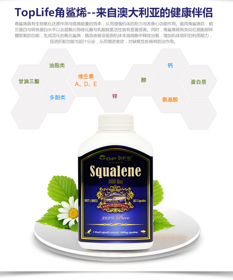 Top life 特维康99.9%高纯度复合鲛鲨烯365粒