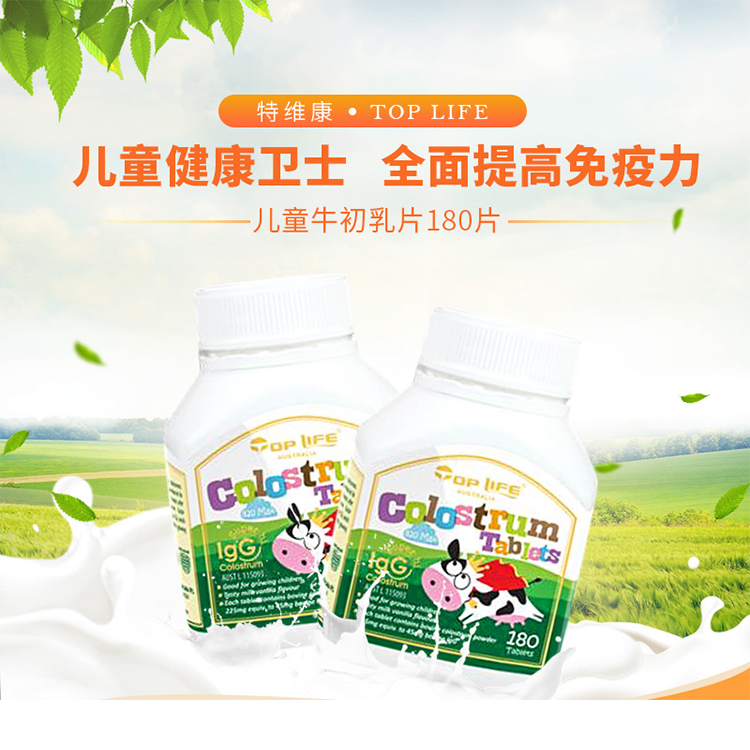 Top Life 特维康 儿童牛初乳片820mg 180片 抵抗感冒 流感和病毒感染