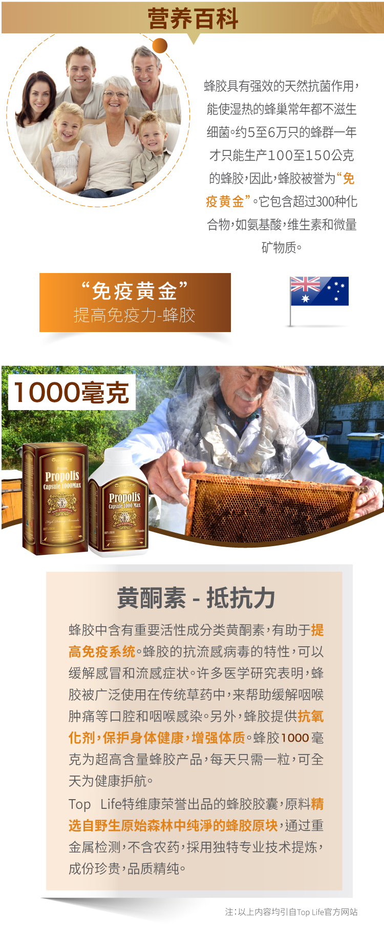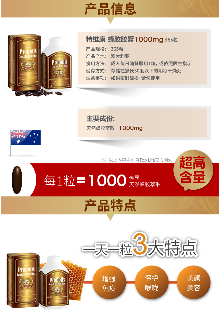 Top life 特维康无铅黑蜂胶2000mg 365粒