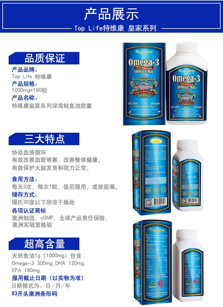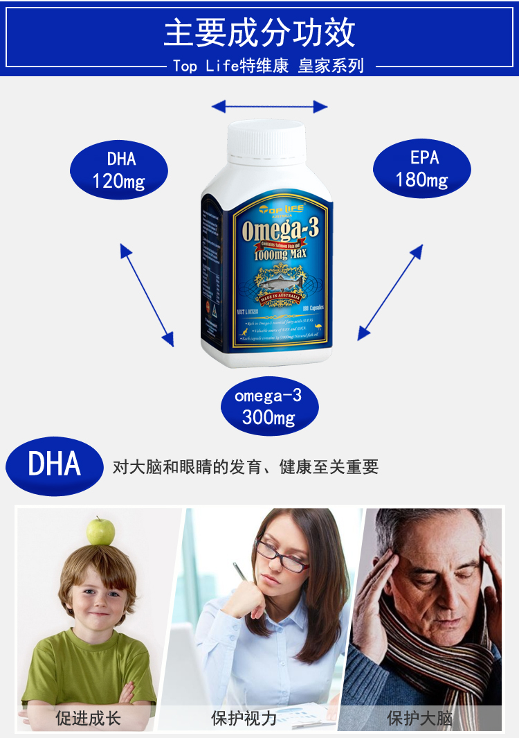 Top Life 特维康 欧米伽3深海三文鱼油胶囊180粒