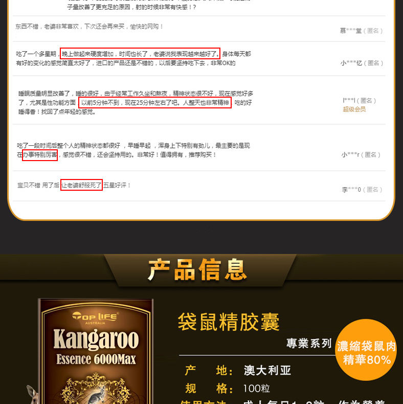 Top Life 特维康 袋鼠精 6000毫克 100粒 增强体力 倍增精力