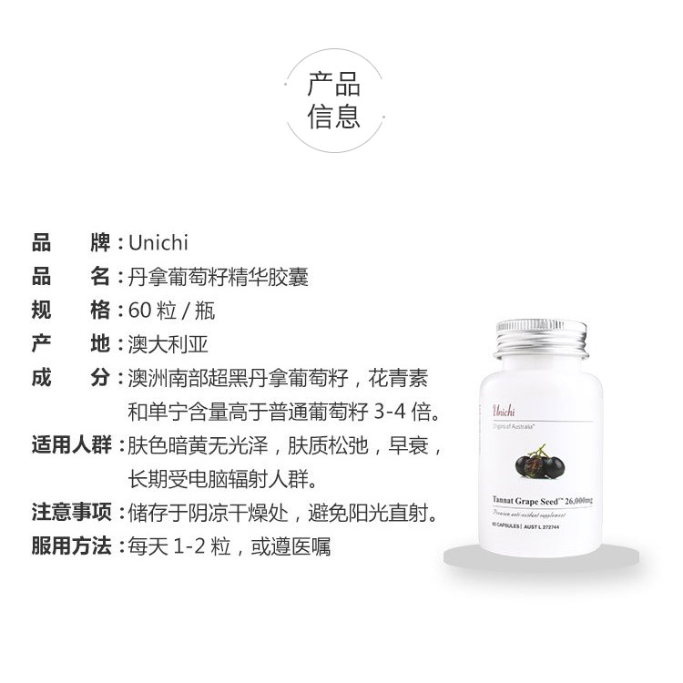 Unichi 丹拿葡萄籽精华胶囊 60粒